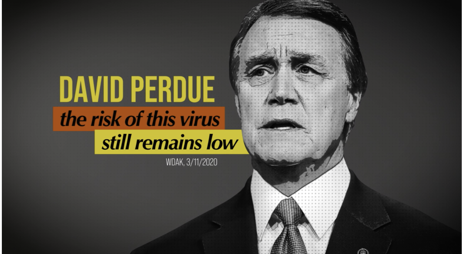 VO: “All while David Perdue cashed in. The same day his committee got a closed-door briefing, Perdue bought stock in a maker of masks and gloves. And went on to make 383 individual stock trades worth up to 14 million dollars. Now Perdue’s blocking help for small businesses and stopping stimulus checks for Georgians. David Perdue: He’s never been for you.”